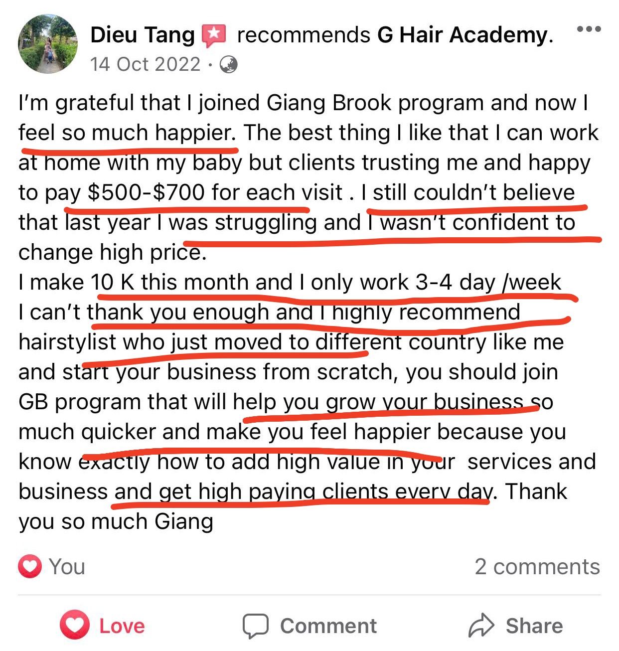 Now I enjoy what I do, I can choose to work hard one day before and just book 1 or 2 clients the next day for just $300-$400/client